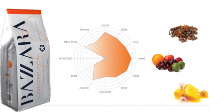 Profilul său aromatic se menține foarte bine în cappuccino sau latte macchiato, oferind un gust consistent și plăcut.
