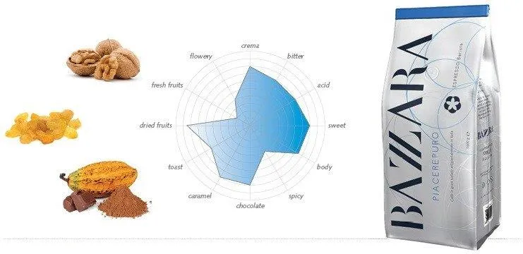 Bazzara PiacerePuro se remarcă prin echilibrul între aromă, corp și prospețime, oferind o cafea rafinată și ușor de savurat.