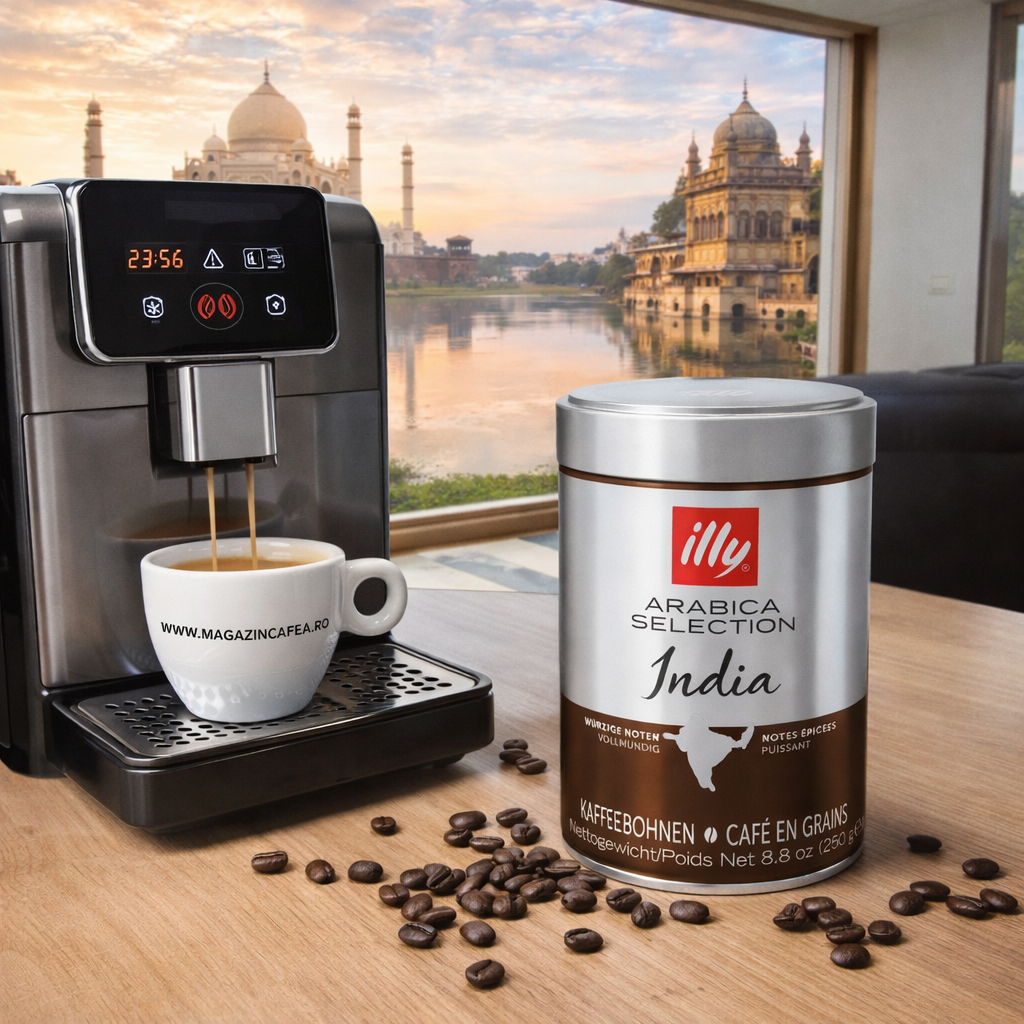 Illy Arabica India cafea boabe 250g este un sortiment single origin premium, realizat din boabe 100% Arabica provenite din India, o regiune recunoscută pentru cafelele sale intense, condimentate și cu corp pronunțat. Prăjită în Italia de Illy, această cafea oferă un espresso profund, bogat și bine structurat.