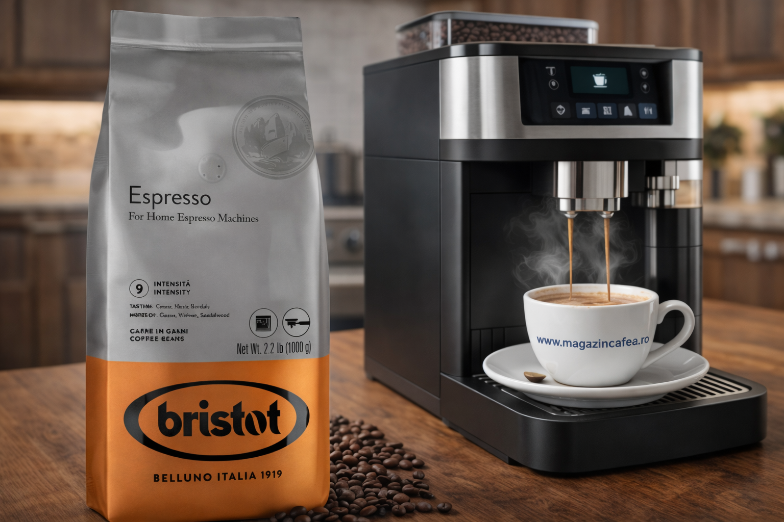Bristot Espresso este o cafea boabe creată special pentru espresso italian, cu gust intens și aromă persistentă.