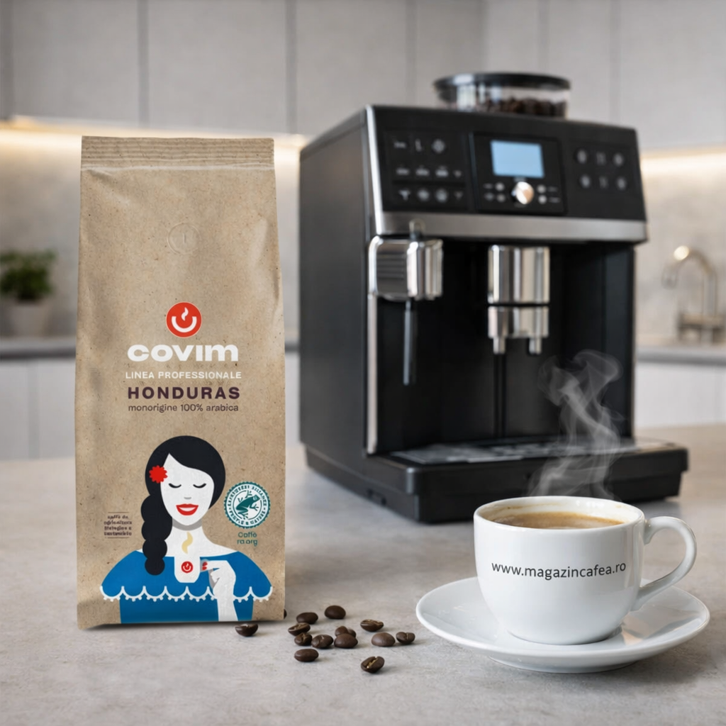 Covim Honduras Cafea Boabe este o cafea de origine, selectată pentru a oferi un profil aromatic echilibrat și o extracție constantă. Boabele provin din Honduras și sunt prăjite pentru a evidenția caracteristicile specifice cafelei de origine, fiind potrivite pentru espresso și alte metode de preparare.