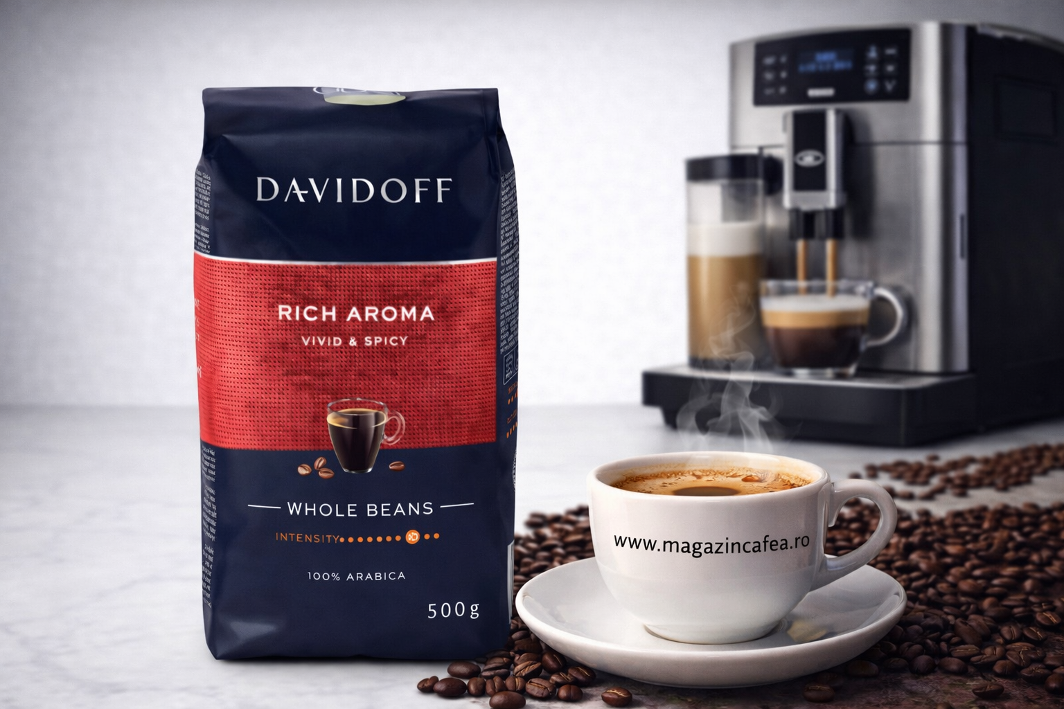 Ideală pentru espresso, dar și pentru cappuccino sau latte, Davidoff Rich Aroma transformă fiecare ceașcă într-un moment de plăcere rafinată. Ambalajul de 500g este practic și păstrează prospețimea boabelor, astfel încât să te bucuri mereu de calitatea premium Davidoff.