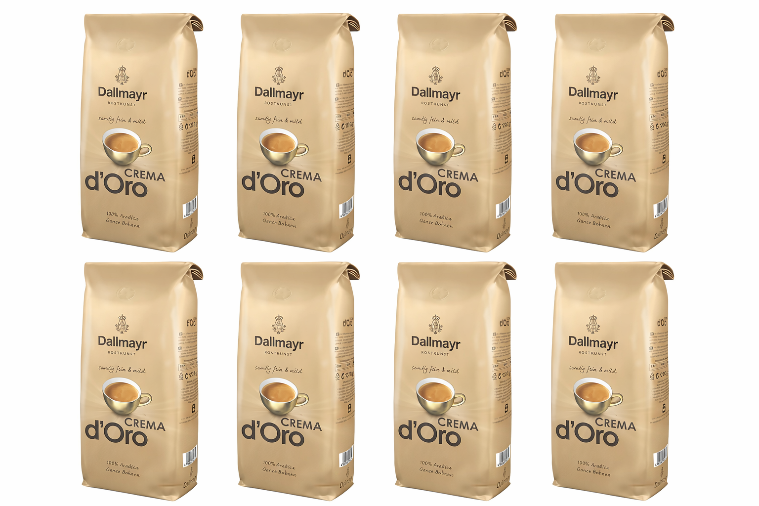 Pachet promoțional format din 8 bucăți de cafea boabe, marca Dallmayr, gama Crema D’Oro.