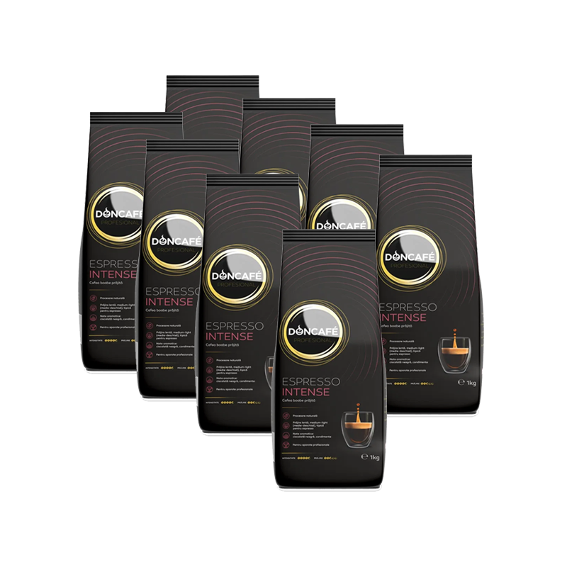 Cu acest pachet economic de 8kg, te asiguri că vei avea întotdeauna cafeaua preferată la îndemână, fie pentru acasă, birou sau pentru locații horeca. Doncafé Espresso Intense este potrivit atât pentru espressoare automate, cât și pentru cele profesionale.