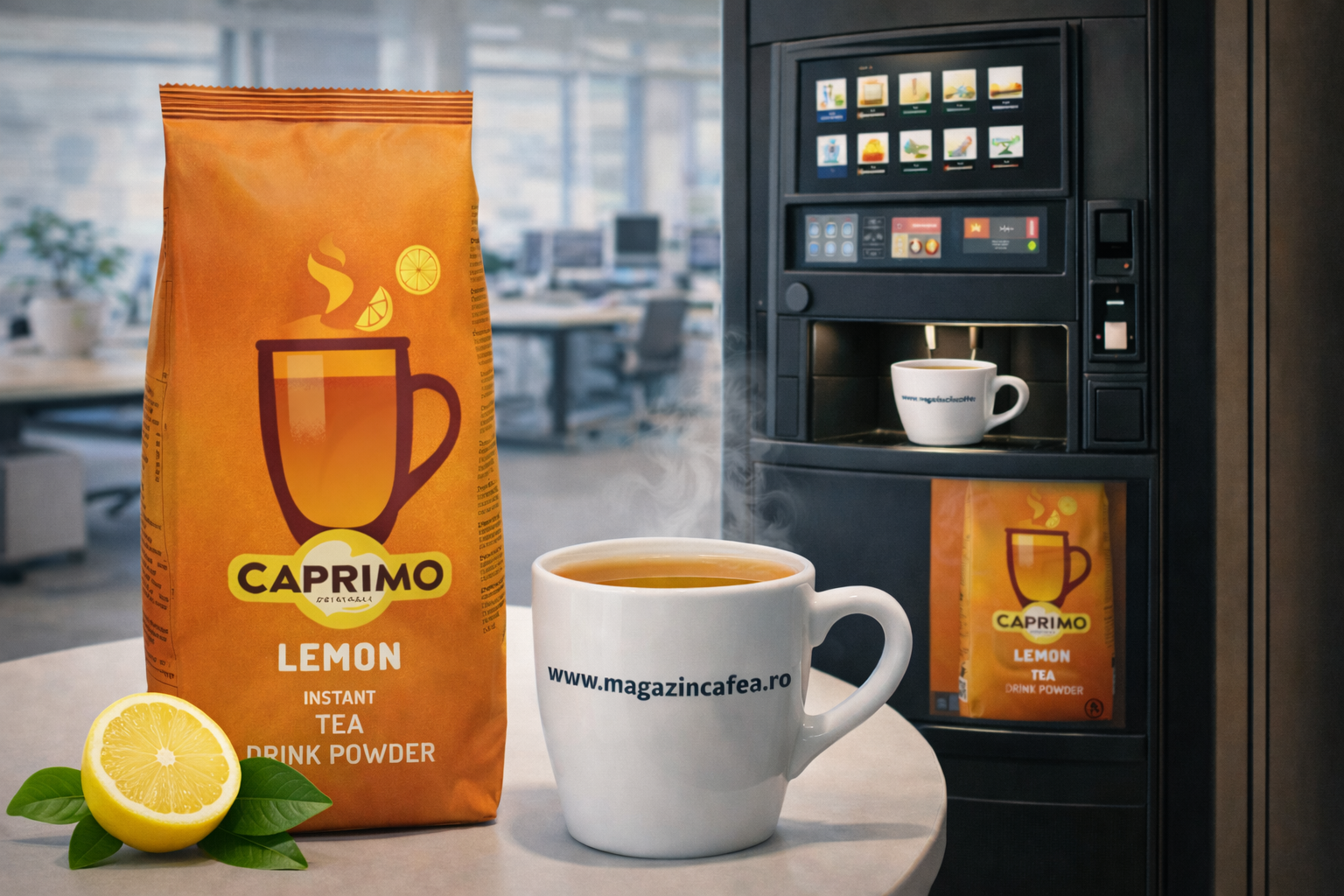 Caprimo Lemon Tea Ceai Instant Lămâie 1 kg 🍋 este o băutură solubilă cu aromă intensă și naturală de lămâie, ideală pentru prepararea rapidă a unei băuturi calde reconfortante sau a unei băuturi reci răcoritoare. Creat special pentru utilizare în medii profesionale, dar perfect și pentru acasă, acest ceai se remarcă prin gustul echilibrat, proaspăt și ușor acidulat, care energizează în orice moment al zilei.