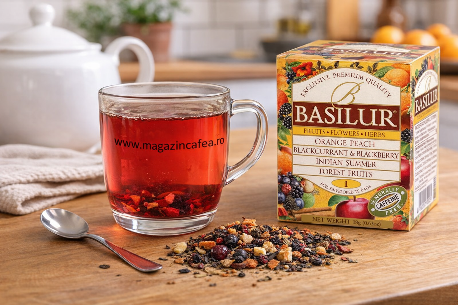 Basilur Assorted Vol.1 reunește patru amestecuri de infuzii din fructe și plante atent selecționate, inspirate din tradiția Ceylon. Fiecare plic este ambalat separat pentru a păstra prospețimea și aroma completă în fiecare ceașcă.