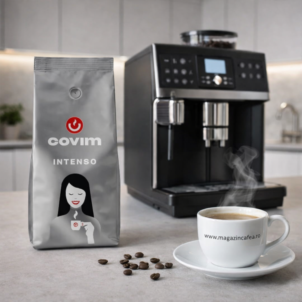 Covim Intenso (Premium) Cafea Boabe este un amestec conceput pentru prepararea espresso-ului cu intensitate ridicată și profil gustativ pronunțat. Cafeaua este prăjită pentru a susține extracții consistente, oferind stabilitate și repetabilitate în preparare, aspect esențial în cafenele și locații HoReCa.