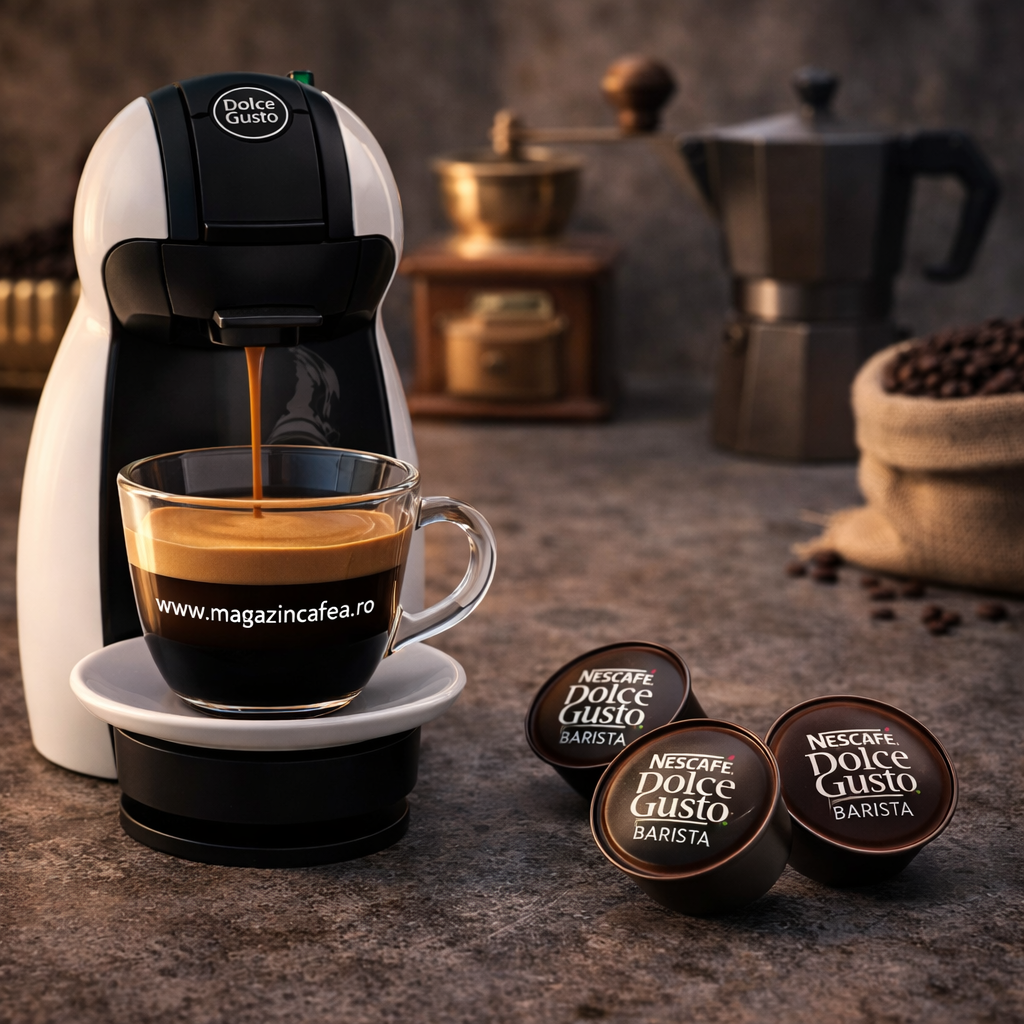 Transformă fiecare pauză într-un moment rafinat cu Nescafe Dolce Gusto Barista – esența cafelei italiene, acum în capsule compatibile cu aparatul tău.